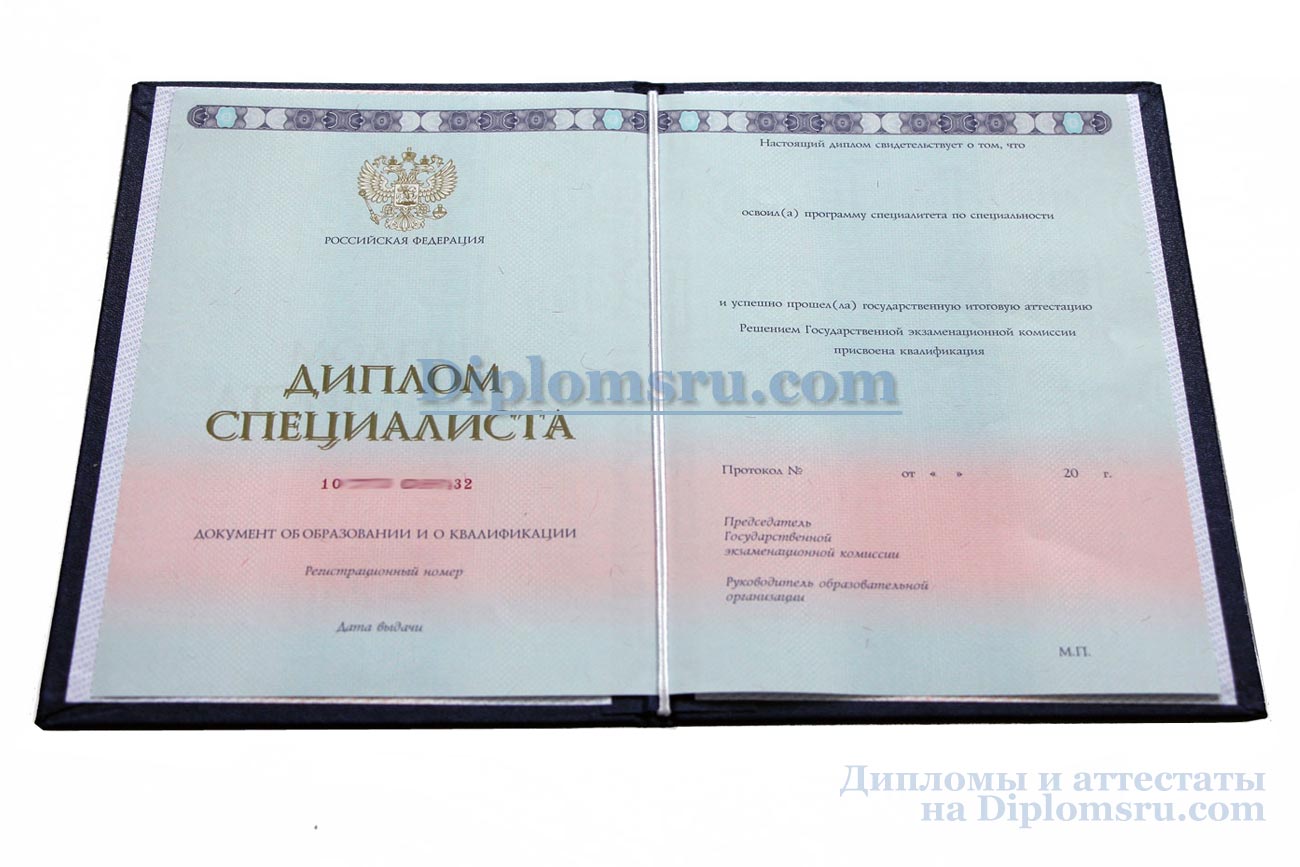 При изготовлении диплома специалиста используется подлинный государственный бланк, заполненный согласно действующим государственным требованиям и установленным стандартам конкретного высшего учебного заведения.